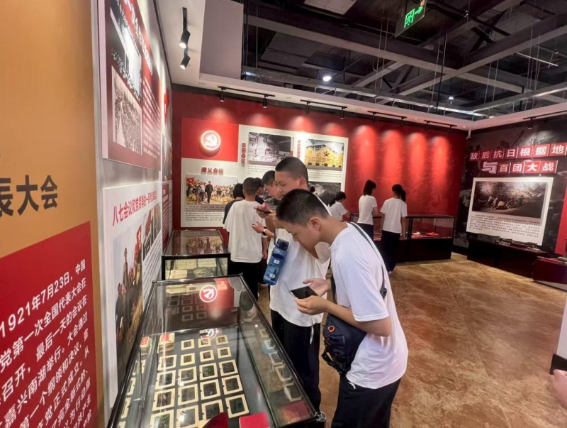 开营仪式落幕,全体人员有序前往党史纪念馆开展红色教育活动。在专业讲解员的引导下,学员们参观珍贵的历史照片、实物展品及沉浸式影像资料,各队分组开展“红色精神与体育成长” 主题讨论,进一步筑牢青少年爱国情怀与奋斗意志。